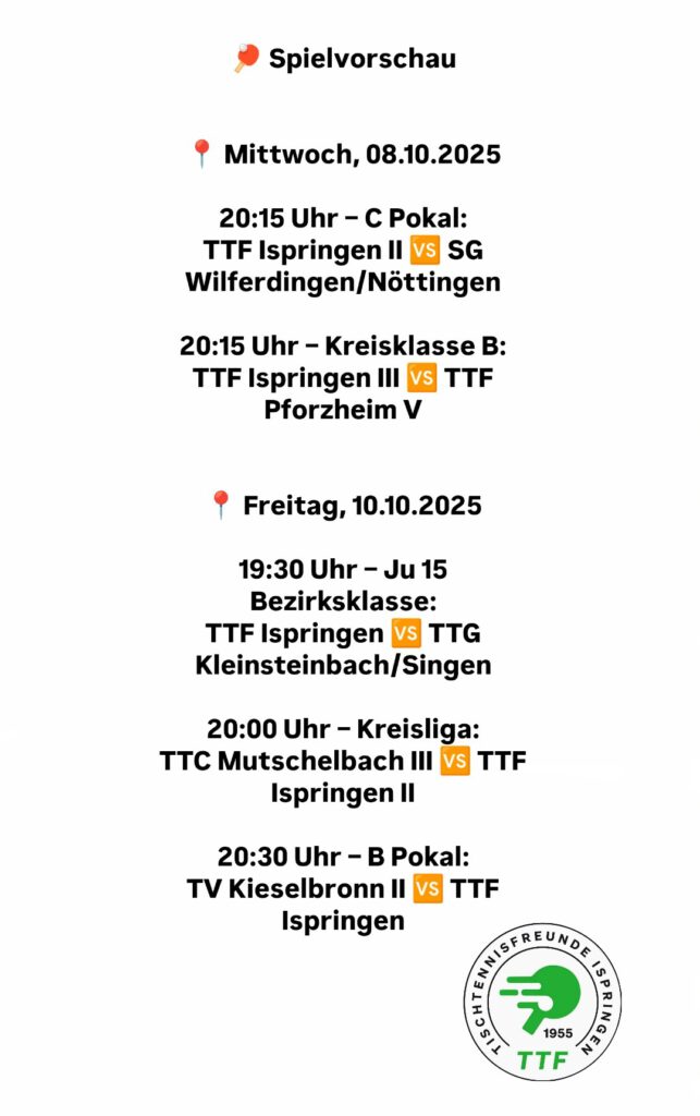 – Einen Tag darauf, am Samstag, 08.11.25 bis Sonntag, 09.11.25 finden die Bezirksmeisterschaften 2025 in Ispringen statt.