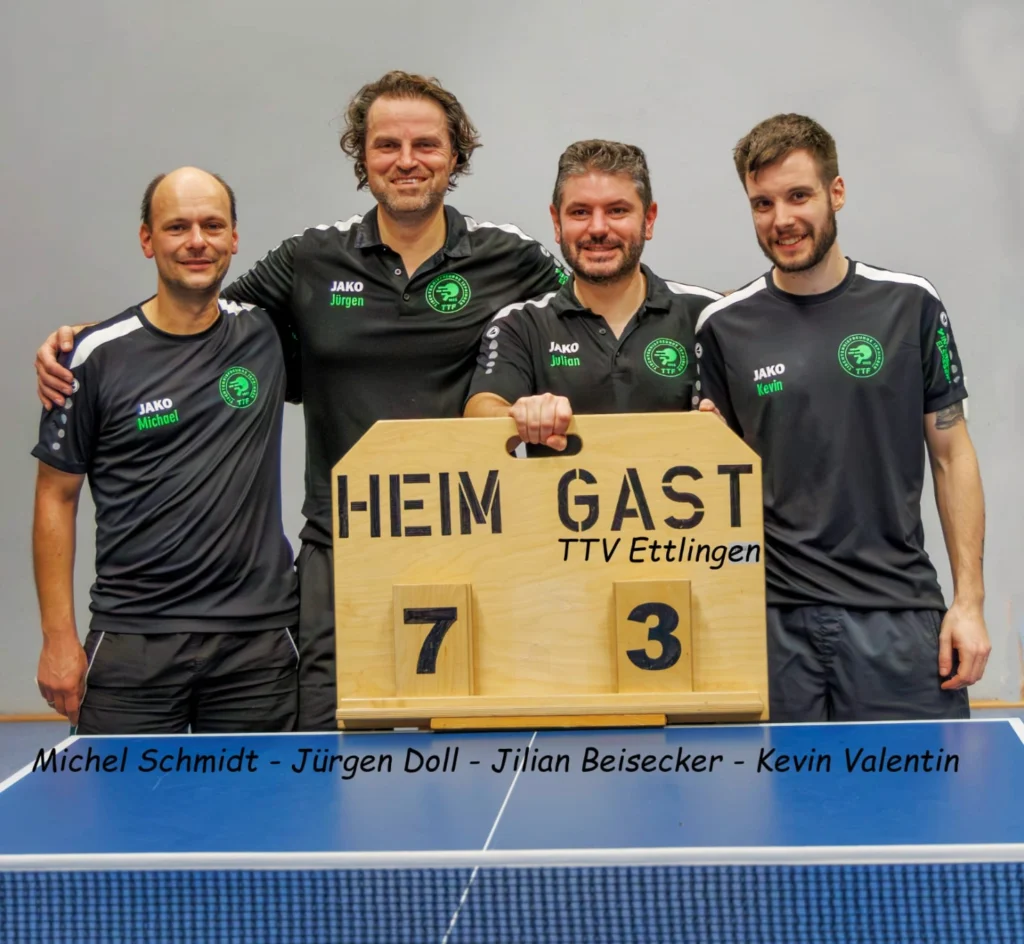 Kevin Valentin und Julian Beisecker legten mit ihrem gewonnenen Doppel den perfekten Start hin. In den Einzeln zeigte Kevin große Nervenstärke, drehte sein erstes Match im Entscheidungssatz und legte anschließend einen souveränen zweiten Sieg nach. Julian Beisecker, aktuell einer der besten Spieler der Liga, blieb erneut ungeschlagen und war gemeinsam mit Kevin einer der Matchwinner des Abends. Auch Jürgen Doll überzeugte mit zwei wichtigen Punkten. Michael Schmid kämpfte stark, musste sich aber knapp im fünften Satz geschlagen geben. Starke Teamleistung – weiter so!