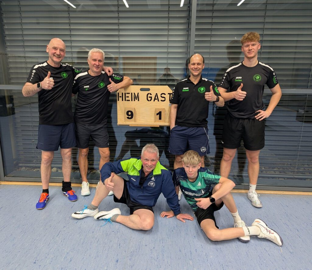 Im Spitzenspiel um den direkten Aufstiegsplatz setzte sich unsere dritte Mannschaft eindrucksvoll mit 9:4 gegen den TTC Tiefenbronn III durch. Von Beginn an war es eine intensive und umkämpfte Partie, in der wir jedoch insgesamt den Tick stabiler und entschlossener auftraten. Matchwinner des Abends waren Meiko und Elias, die sowohl ihre Einzel als auch das Doppel souverän für sich entscheiden konnten. Ebenfalls enorm wichtig waren die Punkte von Rico, der ein starkes Einzel gewann und zusätzlich im Doppel erfolgreich war. Anselm und Jürgen steuerten jeweils einen weiteren Einzelsieg bei und hielten den Vorsprung konstant. Wolfgang zeigte eine sehr engagierte Leistung und war in seinen Spielen nah dran, musste sich am Ende aber trotz guter Ballwechsel geschlagen geben. Mit diesem verdienten 9:4-Erfolg verteidigt unsere Dritte die Tabellenführung und setzt im Aufstiegsrennen der Kreisklasse B ein echtes Ausrufezeichen. Ein rundum wichtiger Sieg zur richtigen Zeit.