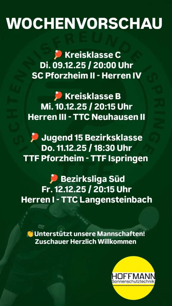Am Mittwoch 11.12.2024 Schüler/Jugend (Einzel) ab 18:00 Uhr,