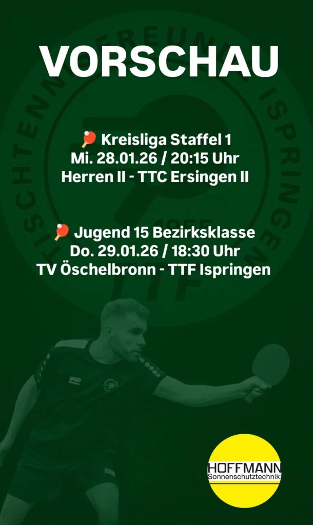 Am Sonntagmorgen verlor unsere erste Mannschaft beim TTV Ettlingen IV mit 3:7. Insgesamt zeigte sich der Spielverlauf deutlicher, als man es sich erhofft hatte, auch wenn einzelne Spiele umkämpft waren. Die Punkte für Ispringen holten Julian Beisecker, Fabian Pöhm und Michael Schmid. Trotz Einsatz und Kampfgeist reichte es an diesem Vormittag nicht für mehr. Besonders bitter war der enge Entscheidungssatz von Jürgen Doll zu Beginn, der sinnbildlich für einen gebrauchten Spieltag stand.