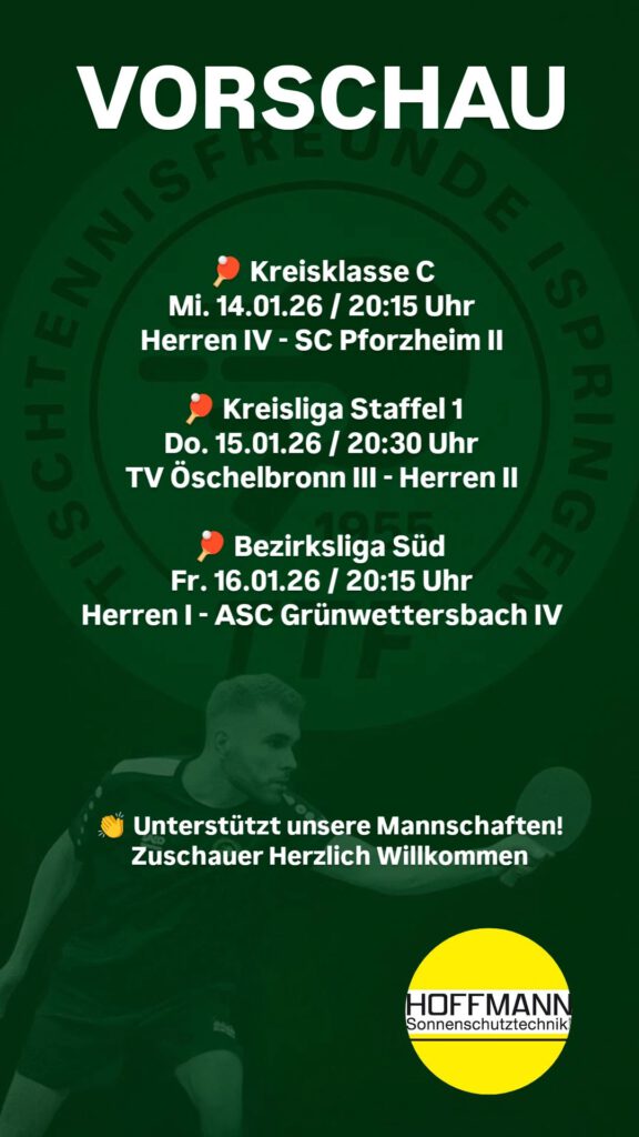 | Mi. 11.01.23 | 20:15 | 1 | TTF Ispringen II | SC Pforzheim | 9:2 | |