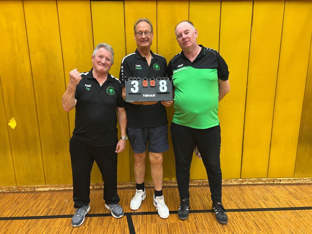 Was für ein Abend in Pforzheim! Trotz eines Fehlstarts in den Doppeln – beide Partien gingen knapp verloren – zeigte TTF Ispringen IV eindrucksvoll Moral und Kampfgeist. Nach dem 0:2-Rückstand drehte das Team in den Einzeln richtig auf und gewann das Punktspiel gegen SG-ESV-PSV Pforzheim V am Dienstagabend souverän mit 8:3! Besonders Youngster Linus Geis überzeugte mit starken Auftritten und blieb in seinen Einzeln ungeschlagen. Auch Siegfried Garbatzki, Claus Kellenberger und Gerhard Augenstein zeigten Topform und trugen mit konzentrierten Leistungen zum deutlichen Sieg bei. Ein rundum gelungener Auftritt nach anfänglichen Startschwierigkeiten – so darf’s weitergehen!