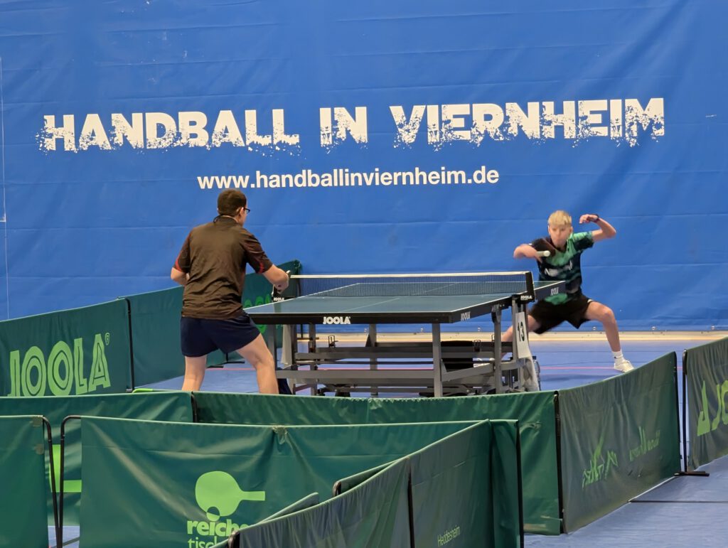 Bei den 9. Offenen Viernheimer Stadtmeisterschaften des TSV Amicitia Viernheim 1906/09 e.V. war Ispringen mit einer vierköpfigen Truppe vertreten. Michael Schmid, Meiko Höschele, Rico Garbatzki und Anselm Schröder gingen in der Leistungsgruppe C bis 1500 TTR an die Tische und lieferten engagierte Auftritte ab. Für Michael und Rico lief es besonders rund. Sowohl im Einzel als auch im Doppel spielten sie sich souverän bis ins Achtelfinale und zeigten dabei mutiges, druckvolles Tischtennis. Meiko und Anselm hatten es schwerer und mussten sich leider bereits in der Gruppenphase verabschieden, sammelten aber wertvolle Turniererfahrung. Am Ende blieb vor allem der Eindruck eines gut organisierten, fairen und sportlich attraktiven Turniers mit viel Spaß am Spiel. Ein großes Dankeschön an unsere Jungs, die die Ispringer Fahne in Viernheim hochgehalten haben.